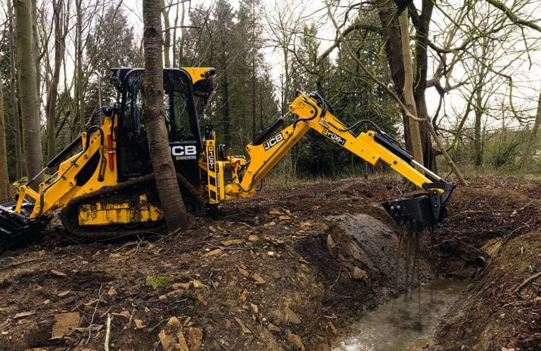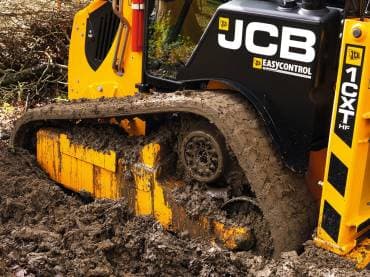 - Экскаватор-погрузчик с бортовым поворотом JCB 1СXT на гусеницах обеспечивает производительность и универсальность двух машин в одном компактном корпусе.