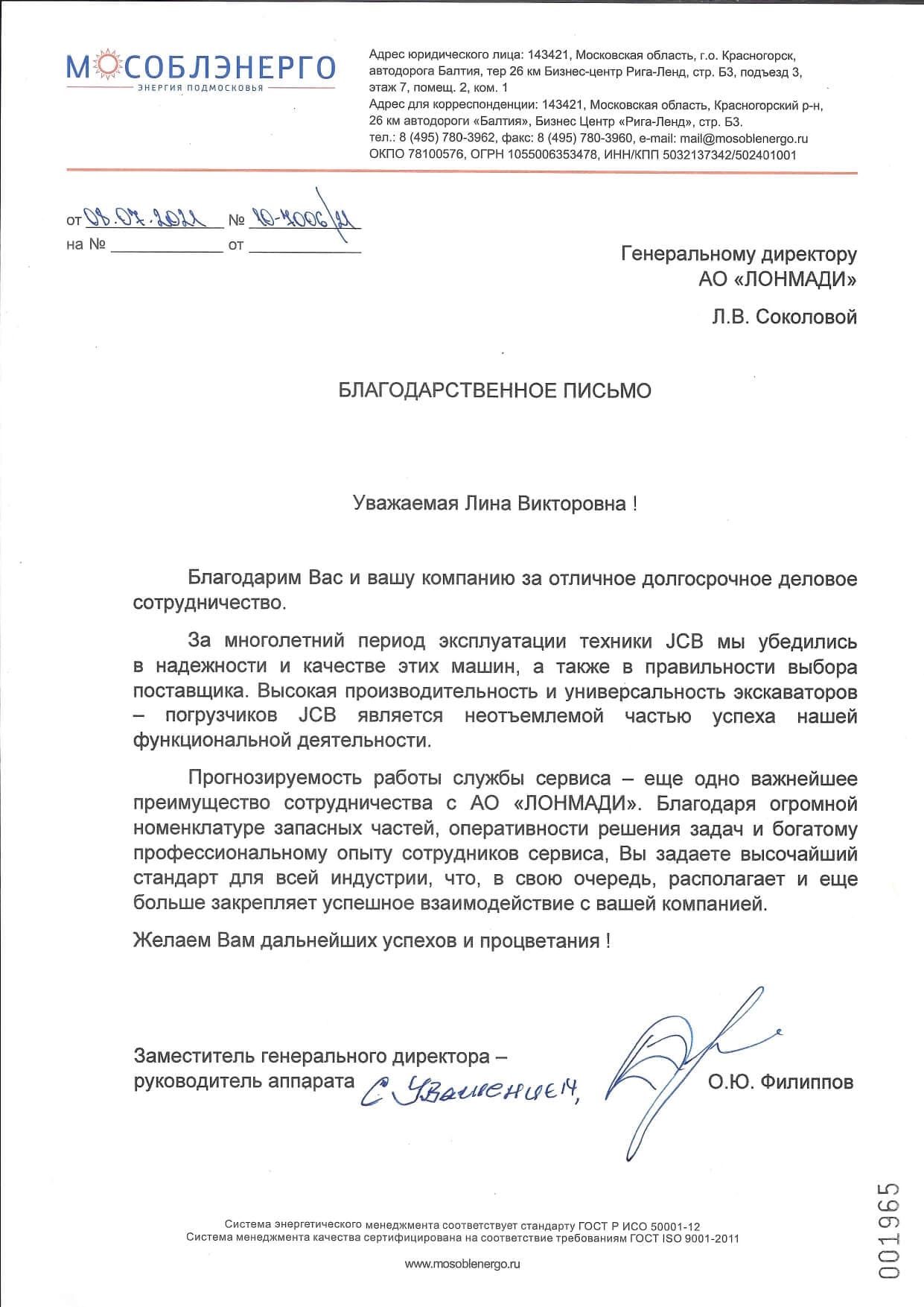 Благодарственные письма